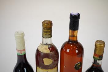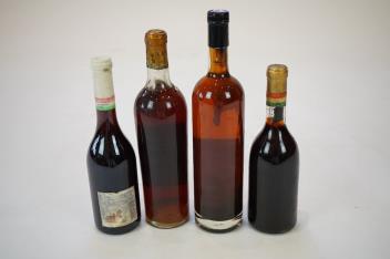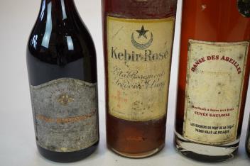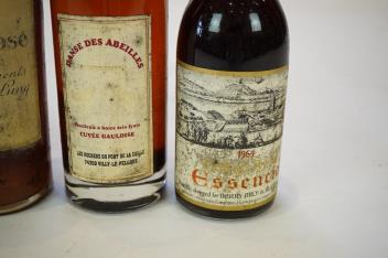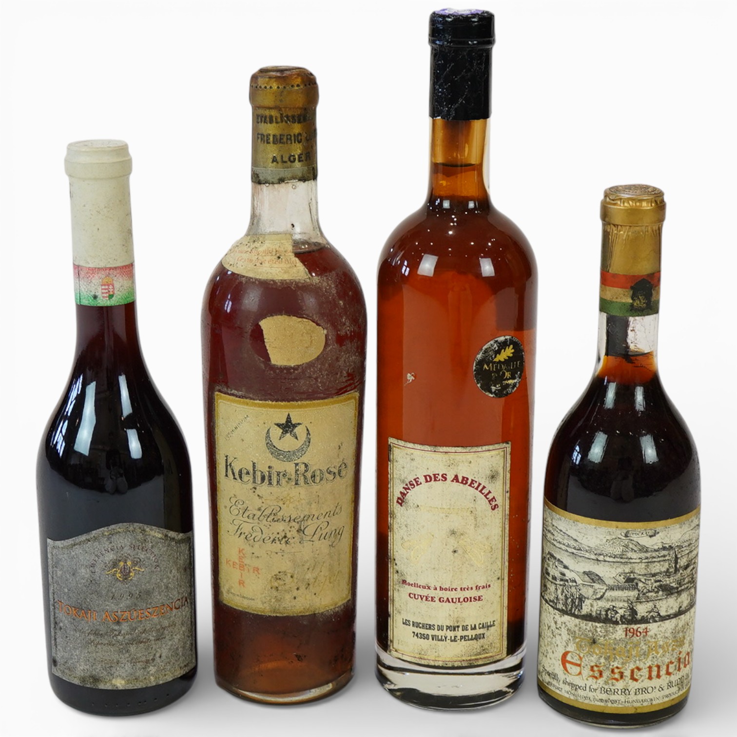 Lot 84 , Two 50cl bottles of Tokaji Aszu Essencia; 1964 and 1995, both 50cl, a bottle of 1945 Kebir Rose Frederic Lung, 75cl, with a bottle of Danse des Abeilles Cuvee Gauloise, 75cl, (4 bottles in total).