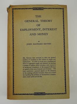 ° Keynes, John Maynard, C.B. (Fellow of Kings College, Cambridge) - (1883-1946) - The General Theory of Employment Interest and Money, 1st edition , 8vo (215 x 130mm), half title, . publisher’s blue cloth lettered in gilt (fine condition), with unclipped dust jacket, Macmillan & Co., Ltd, St. Martin’s Street, London, 1936.