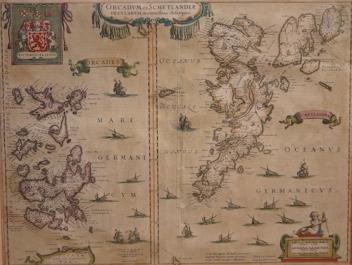 Lot 1781 , Johannes Blaeu (Dutch, 1596-1673), Atlas of Scotland, a hand coloured engraved map of The Orkney Isles and Shetland Isles, 38 x 48cm