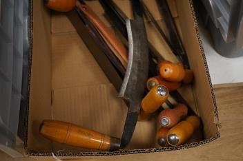 Lot 1069 , Eight wood handle drawknives by Marples, W. Kent, Sheffield, etc.