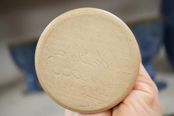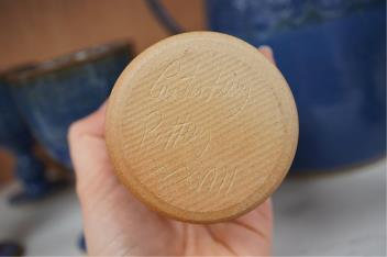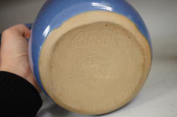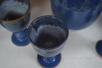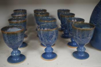 Lot 1108 , A Canterbury pottery, blue glaze jug and twelve goblets, jug 28cm high