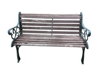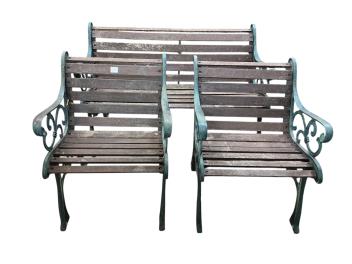 Lot 121 , A cast iron and slatted wood garden bench, width 130cm together with two matching chairs