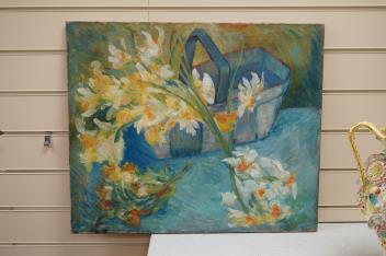 Lot 1766 , In the manner of Van Gogh (Dutch, 1853-1890), still life of daffodils, Post Impressionist style oil on canvas, unframed, 51 x 61cm