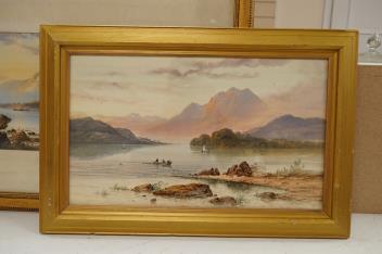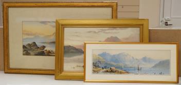 Lot 1730 , Edwin Earp (1851-1945), ‘Women beside a Scottish Loch’ watercolour, together with two further works by the same hand, two signed, largest 24 x 53cm
