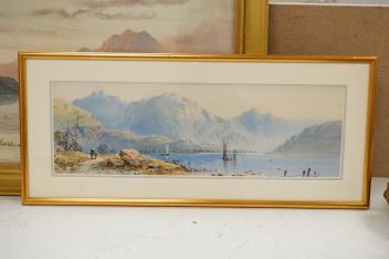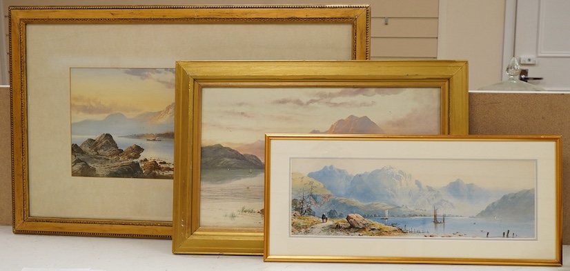 Edwin Earp (1851-1945), ‘Women beside a Scottish Loch’ watercolour, together with two further works by the same hand, two signed, largest 24 x 53cm