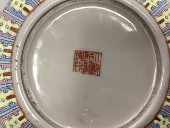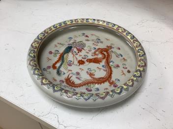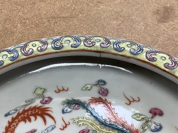 Lot 1175 , A Chinese famille rose dragon and phoenix dish, Qianlong mark but mid 20th century, 22cm diameter