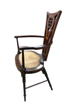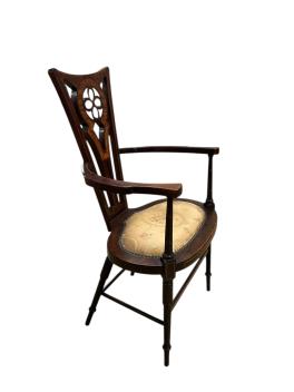 Lot 1251 , An Edwardian mahogany and satinwood elbow chair, width 55cm, depth 40cm, height 96cm