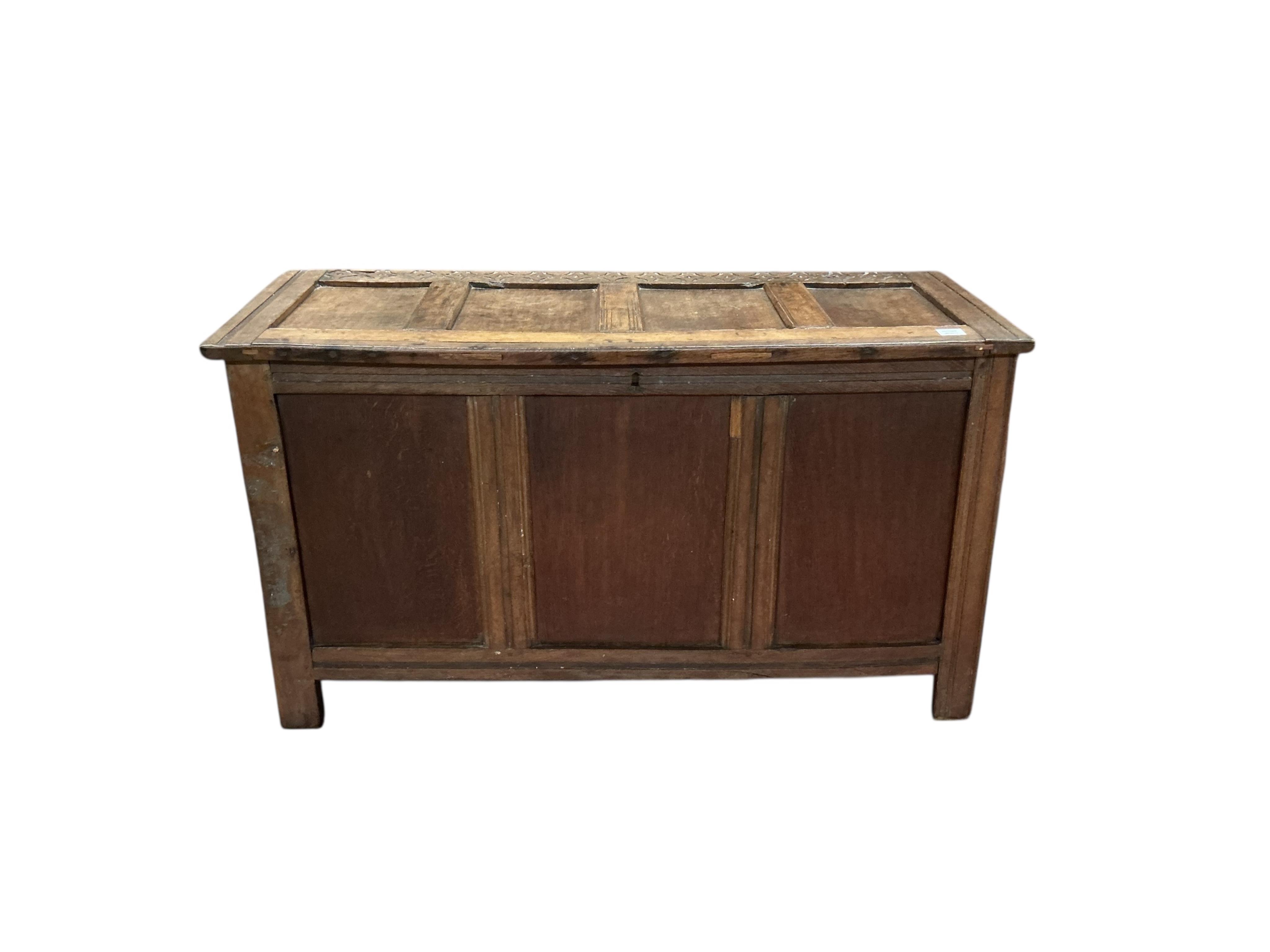 Lot 1247 , An 18th century and later oak coffer, width 133cm, depth 53cm, height 75cm
