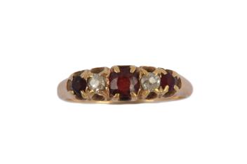 Lot 290 , A garnet and diamond five-stone ring, circa 1900