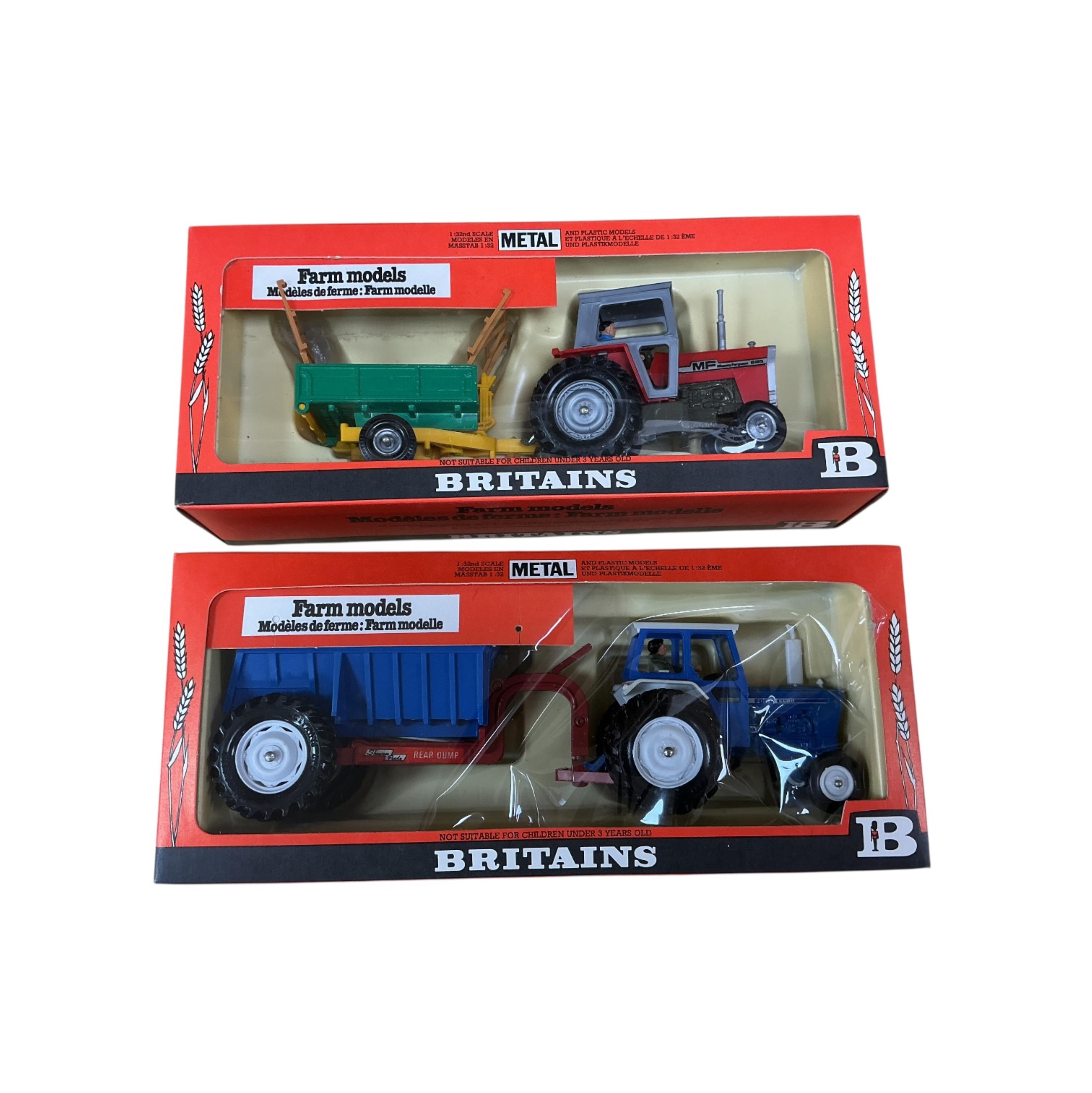 Lot 124 , Two 1970s boxed Britains Farm Models tractor sets; a Ford 6600 tractor and Rear Dump trailer (9630), together with a Massey Ferguson 595 tractor and trailer (9598)