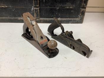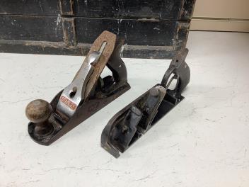 An early 20th century cabinet maker’s ebonised chest of tools comprising of seven drawers containing a wide selection of gouges, chisels, drill bits, hammers, a Stanley Bailey No.4 smoothing plane, a Record No.078 double iron mitre plane, etc., many of the handles stamped with the owner’s name; H. Hill, overall size of the chest; 61cm wide, 45cm high, 20cm deep
