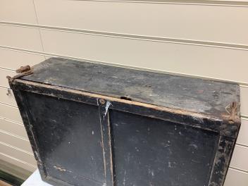 Painted cabinet black paint worn. Contents of all drawers now shown.