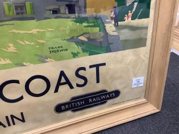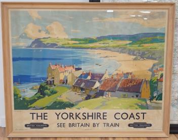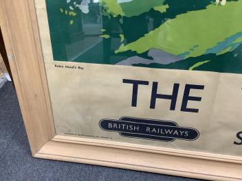 Lot 164 , A British Railways original advertising poster, ‘The Yorkshire Coast See Britain By Train’, with artwork by Frank Sherwin of a view of Robin Hood’s Bay, published by Stafford & Co. Ltd., Netherfield, Nottingham, framed a