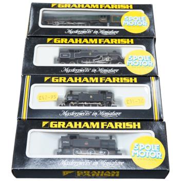 Lot 6 , Four boxed Graham Farish N gauge railway BR locomotives; a Coronation class, King George VI 46244 (1814), a class 4MT, 80064 (1655), class 3F, 47394 (1735), and an 0-6-0T, 47313 (1705)
