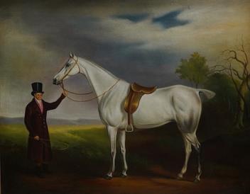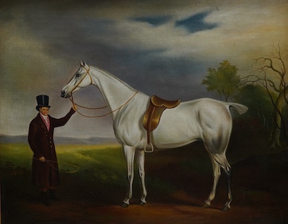 After John E. Ferneley (1782-1860), ‘Lord Howe's Groom with Gray Hunter’, contemporary oil on canvas, 40 x 49cm