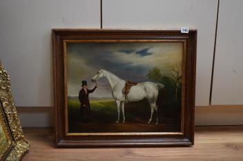 Lot 743 , After John E. Ferneley (1782-1860), ‘Lord Howe's Groom with Gray Hunter’, contemporary oil on canvas, 40 x 49cm