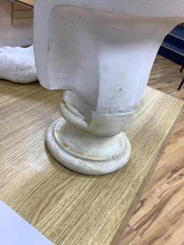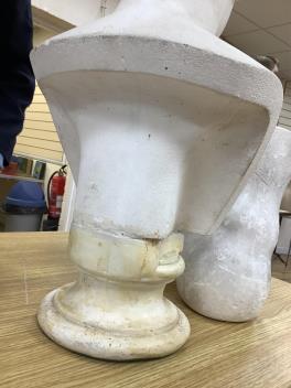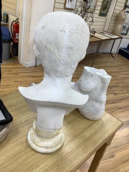 Lot 283 , A cast composition portrait bust of a youth, a large plaster foot, and a cast ceramic portrait roundel, bust 56cm.