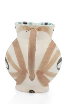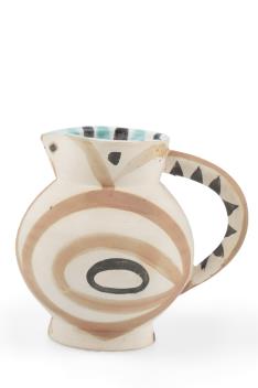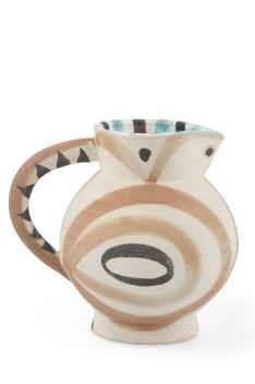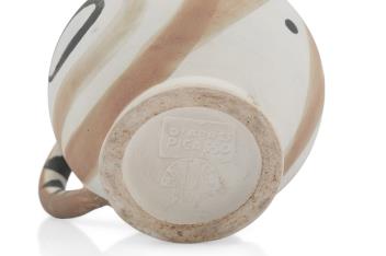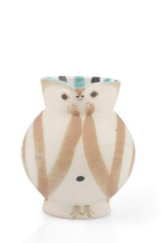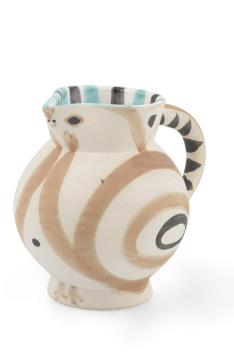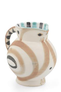 An early example of the ceramics produced from 1947 onwards at the Atelier Madoura, under the direction of Georges and Suzanne Ramié. Picasso frequently returned to the motif of the owl in his later work. This small jug is an authentic editioned replica after the original.