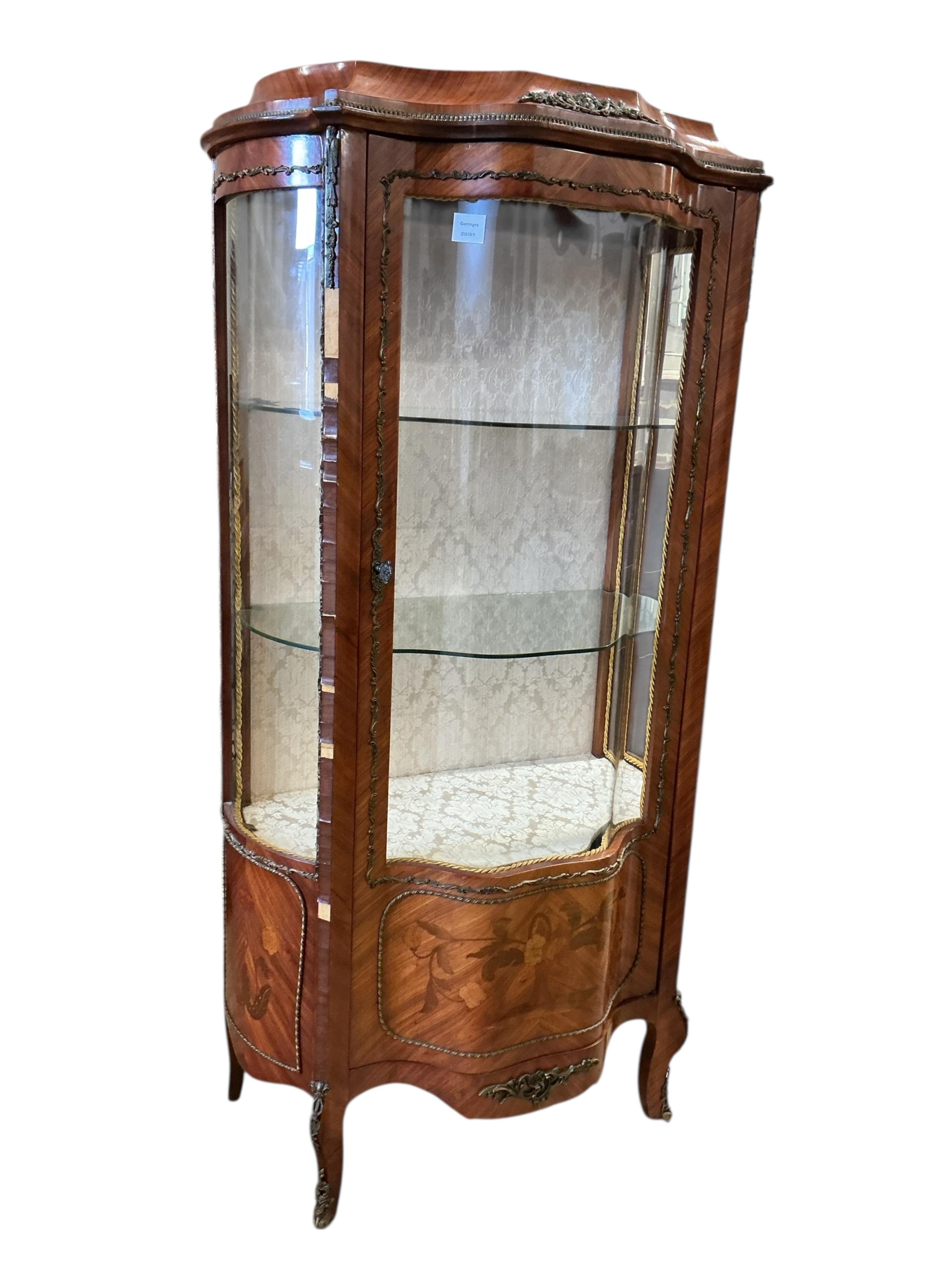 Lot 1236 , A Louis XV style kingwood, marquetry and gilt metal mounted vitrine, width 78cm, depth 45cm, height 158cm