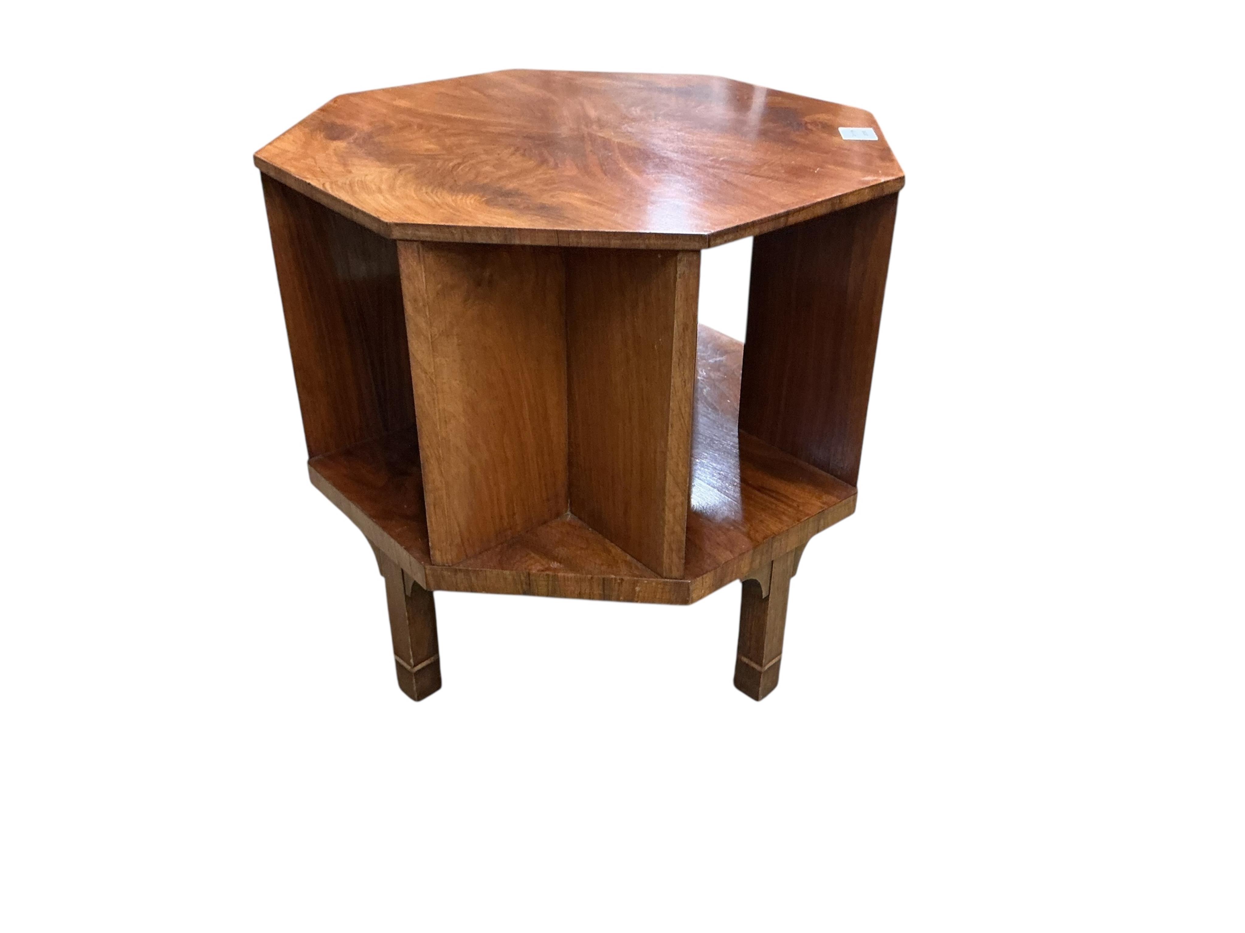 Lot 231 , An Art Deco octagonal walnut revolving book table, width 56cm, depth 56cm, height 55cm