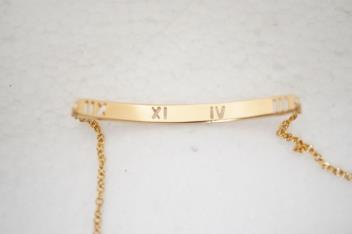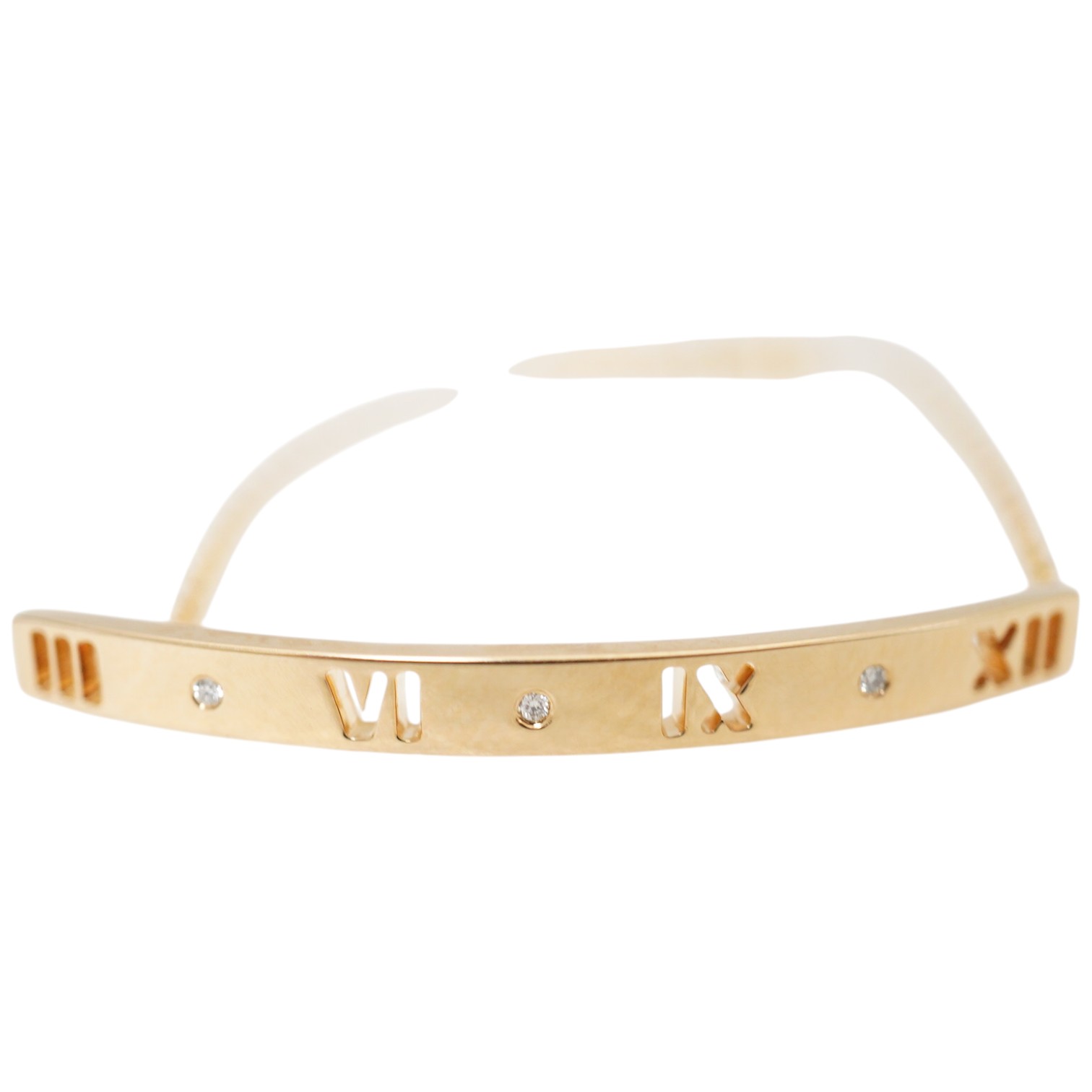 Lot 1159 , Tiffany & Co., a gold and diamond bracelet, 'Atlas', set on a plaque with openwork Roman numerals spaced by brilliant-cut diamonds totalling approximately 0.05 carats, to a chain bracelet, in 18ct gold, length 16.5cm, si