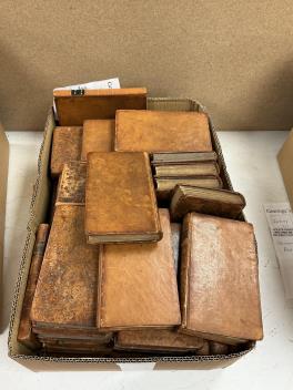 Lot 1418 , Old Leather and Bindings - mostly 18th and 19th cent. morocco and calf bindings, including - The Spectator (8 vols, later 18th cent.)