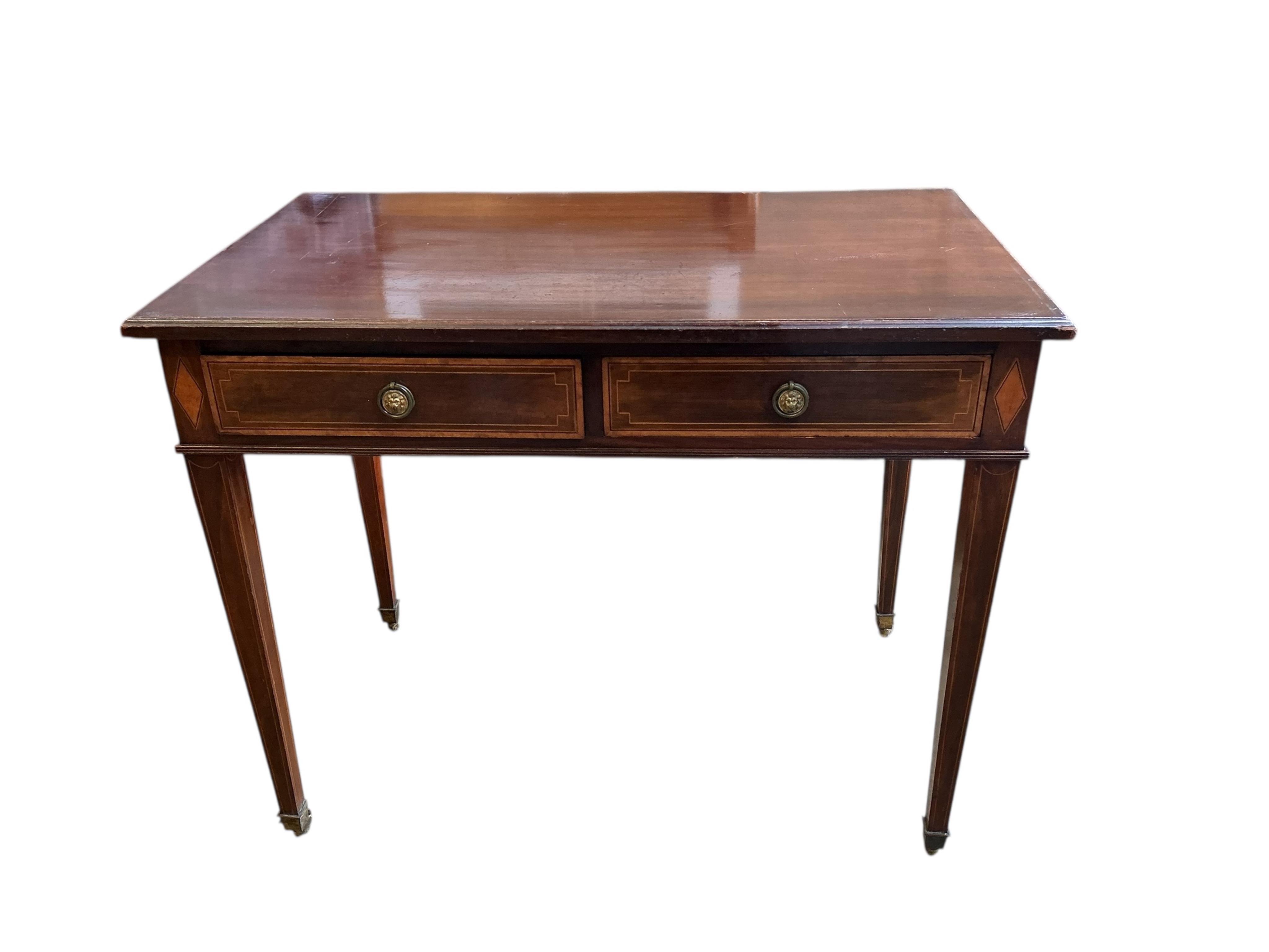 Lot 1295 , An Edwardian inlaid mahogany side table stamped Edwards and Roberts, width 92cm, depth 53cm, height 76cm