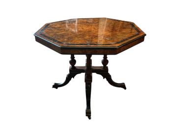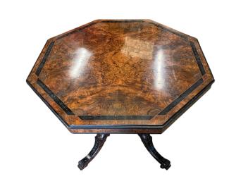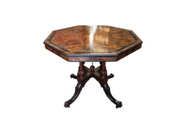 Lot 1266 , A Victorian Aesthetic period inlaid burr walnut octagonal centre table, width 90cm, height 71cm