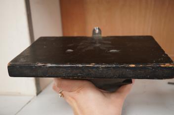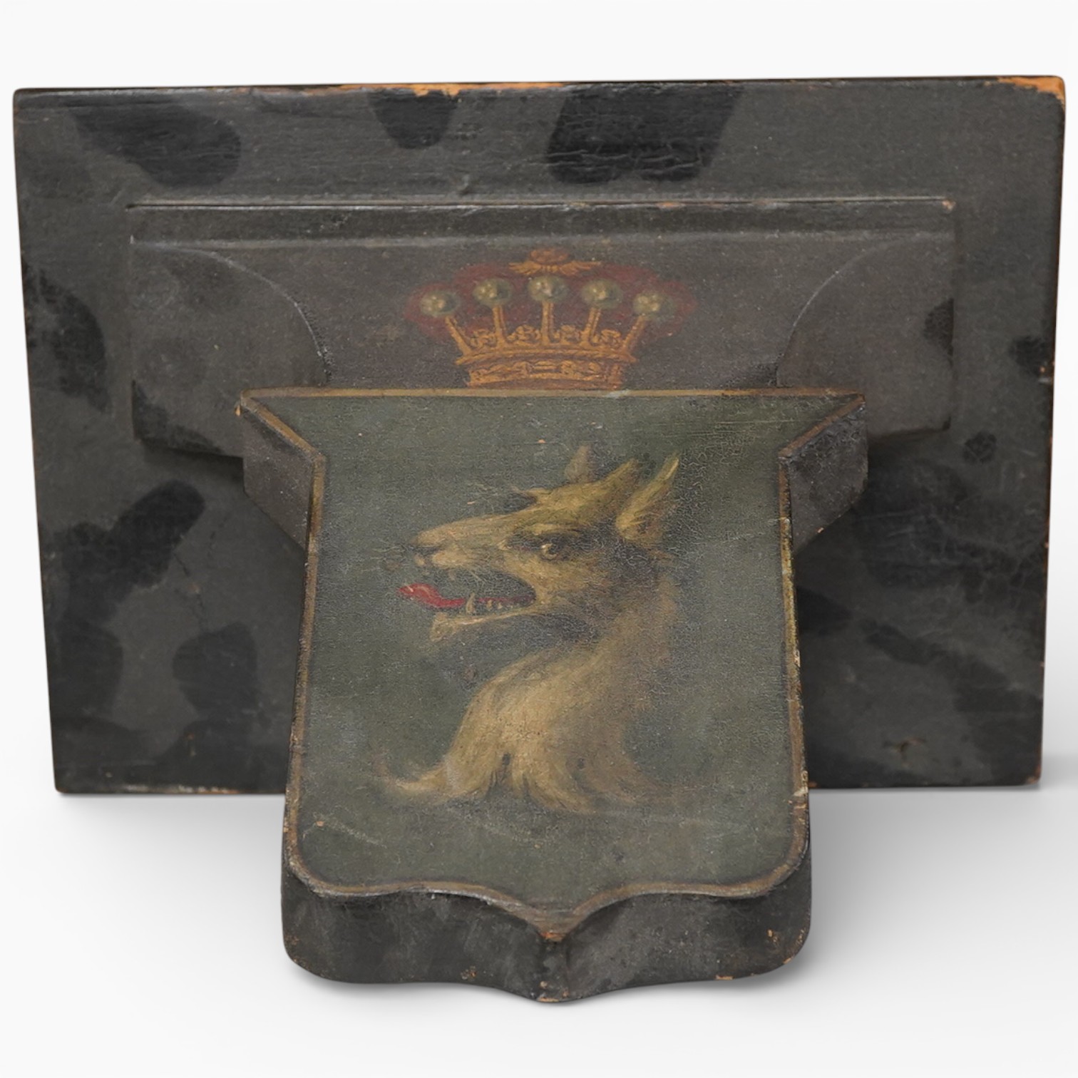 Lot 1406 , A Victorian ebonised wall bracket with painted armorial crest of a crowned beast, 23cm wide