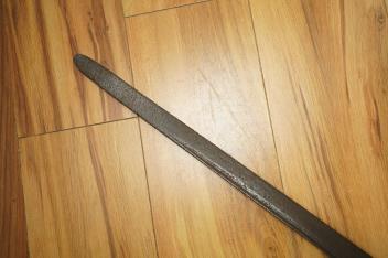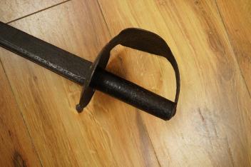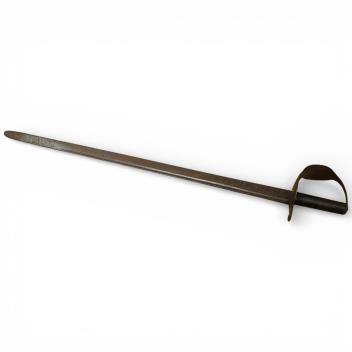 Lot 13 , A Georgian naval rating’s boarding cutlass, with single edge blade cut with fuller, double disc iron guard and iron grip painted black