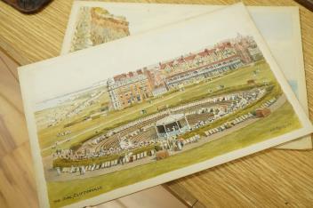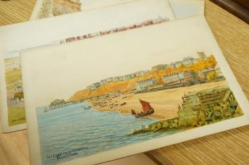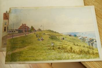 Lot 713 , Alfred Robert Quinton (1853-1934), a set of six original watercolours for postcard designs, Kent Coast views to include ‘The Oval, Cliftonville’, Kingsgate Castle’ and ‘The Promenade, Deal’, 21 x 31cm