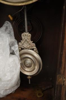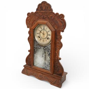 Lot 1435 , An American carved wood mantel clock manufactured by The Ansonia Clock Company, New York, with pendulum and key, 57cm high