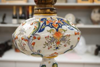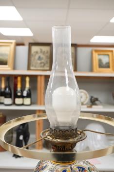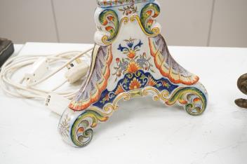 Lot 1430 , A tall 19th century French faience lamp, base 62cm high not including brass fitting and funnel.