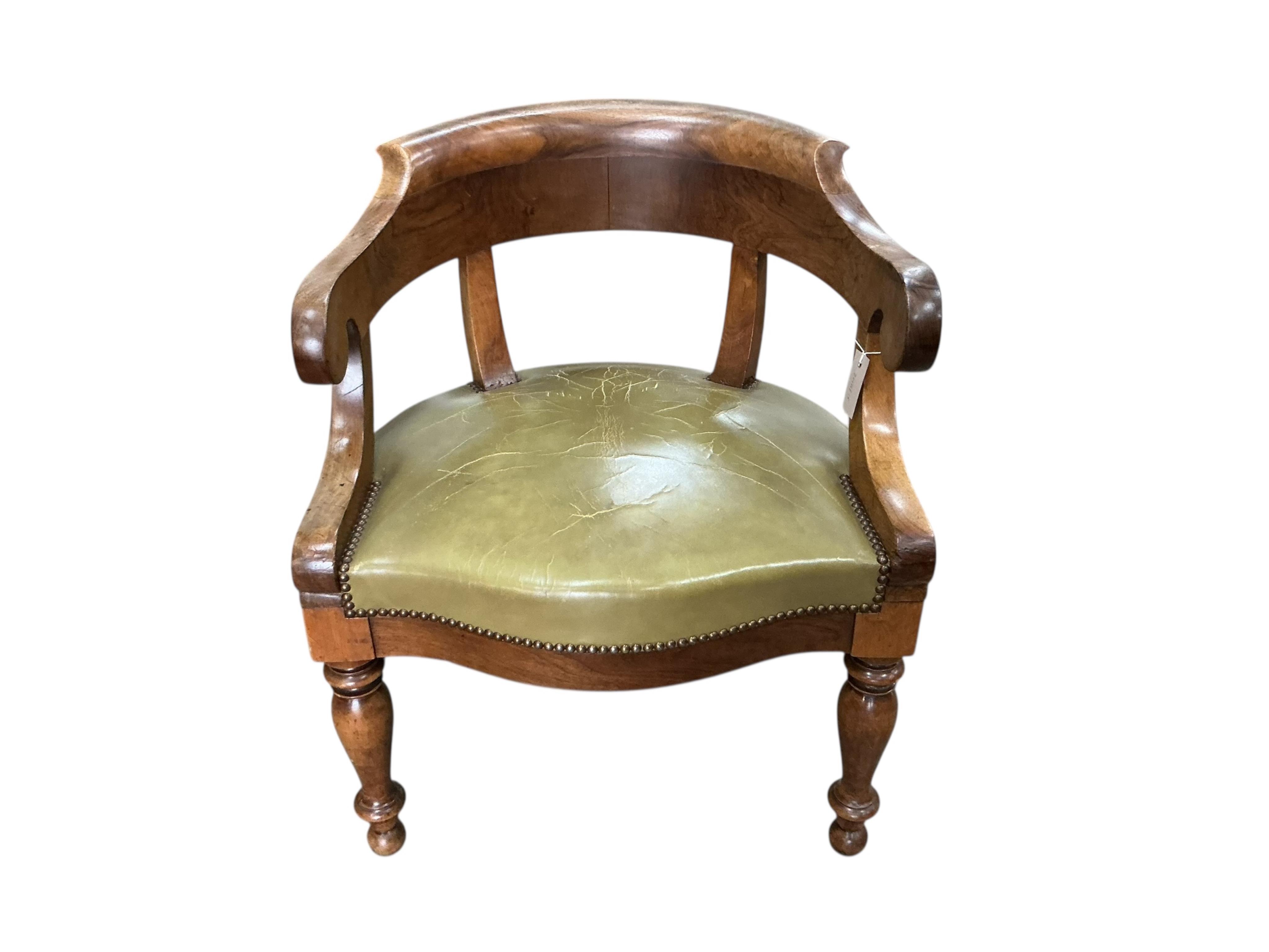 Lot 274 , An early 20th century walnut desk chair, width 65cm, depth 50cm, height 78cm