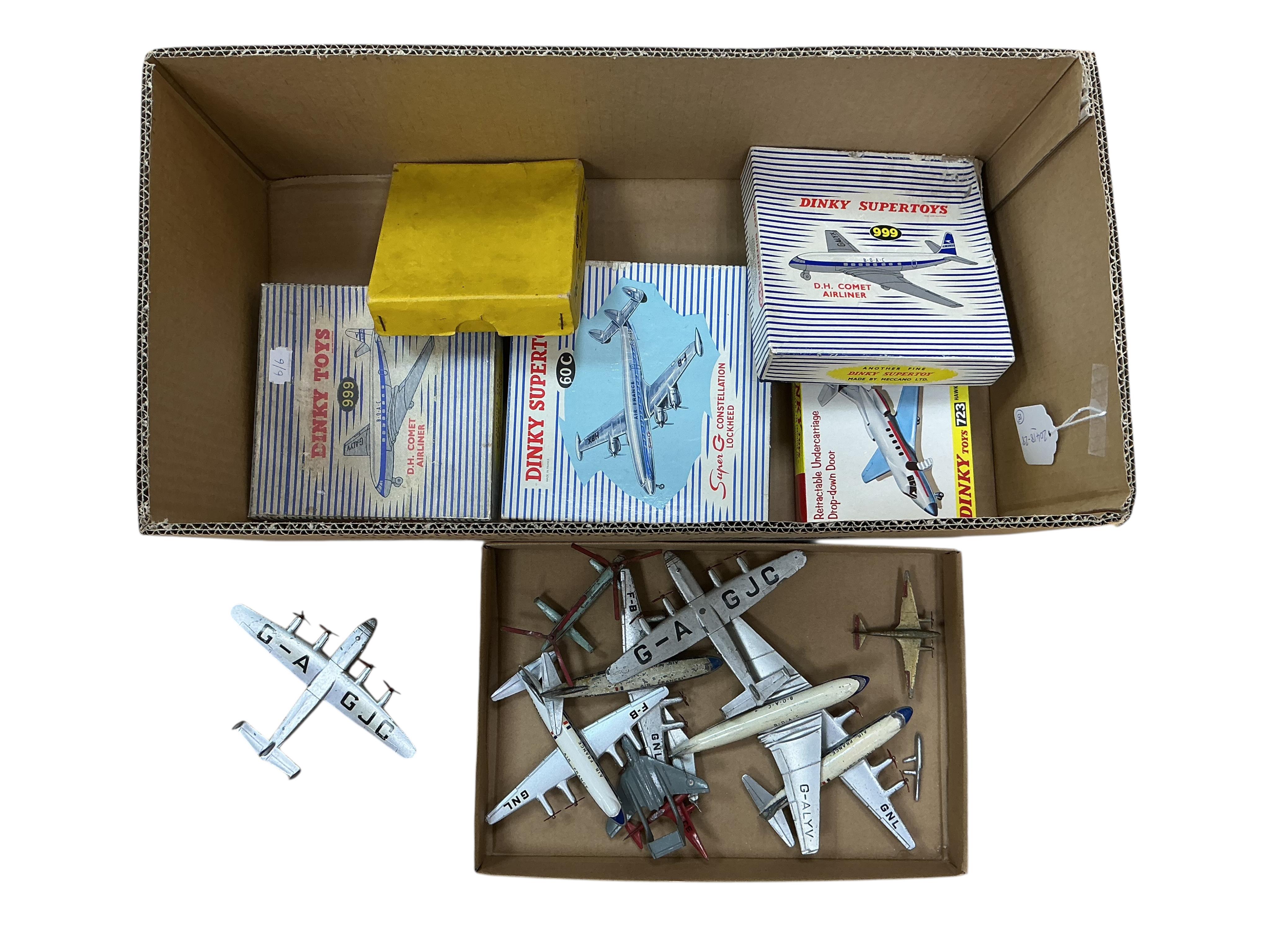 Fifteen Dinky Toys aircraft, including five boxed aircraft; a Hawker Siddeley H.S.125 Executive Jet (723), a D.H. Comet Airliner (999), a Supermarine G Constellation Lockheed (60C), an Avro York Air Liner (70A), etc.