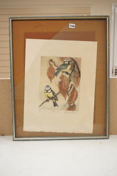 Lot 1746 , David Koster (1926-2015), ‘Blue Tits’, signed in pencil to the margin, limited edition 36/50, etching with aquatint, 51 x 38cm