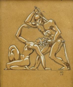 Lot 749 , Danish school, early 20th century, erotic study after the antique, signed R N and dated ‘20, pencil and watercolour, 14 x 11.5cm
