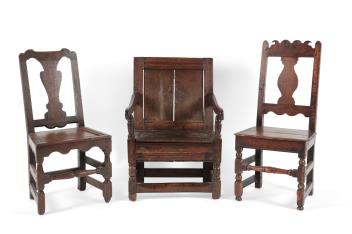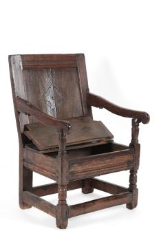 Lot 280 , A Charles I joined oak merchant’s panel back box-seated armchair