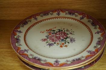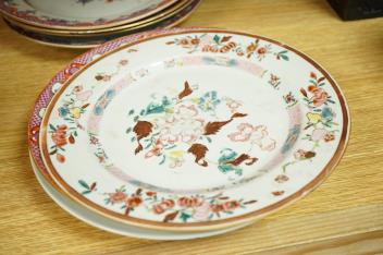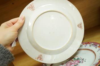 Lot 405 , A group of seven Chinese 18th century export famille rose plates, largest 23cm in diameter