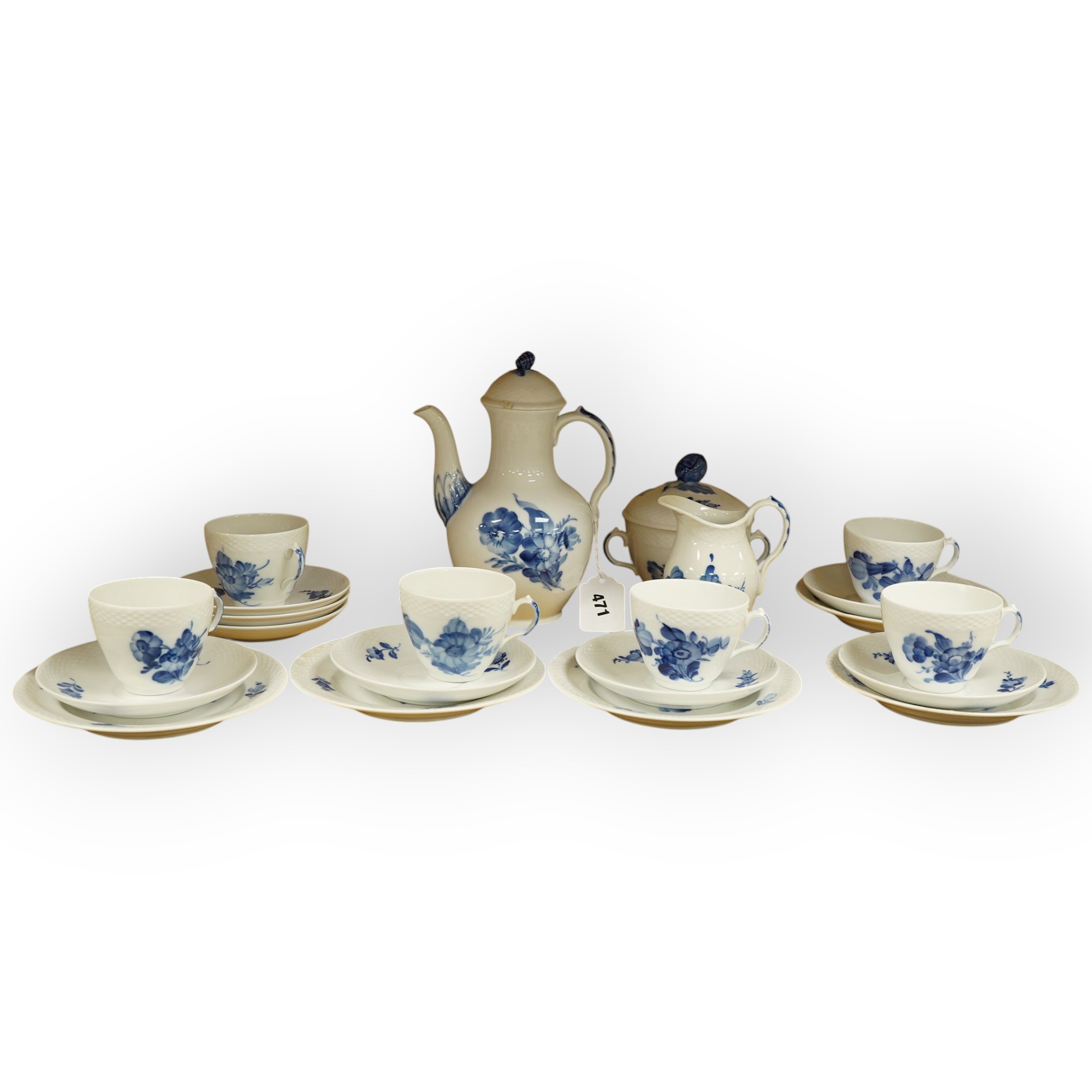 Lot 471 , A Royal Copenhagen blue and white floral part coffee set to include coffee pot, milk jug and trios