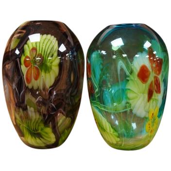 Two Murano coloured glass floral baluster vases, larger height 31cm.