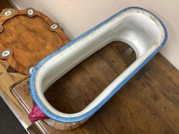 Lot 422 , A 19th century Paris porcelain planter, hand painted with a wine making scene and kitchen scene, with lead liner, 55cm wide