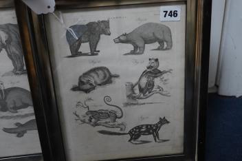 Lot 746 , Early 19th century, ‘Mammalia’, three zoological interest engravings, two published by A. Bell, together with two decorative watercolours of insects, 23 x 18cm