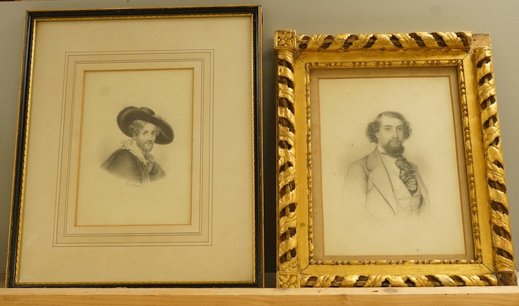 William Warman (1806–1875), portrait of a gentleman in 17th century attire, pencil study, together with another portrait of a gentleman, signed A. Richter and dated 1850, largest 20 x 14cm