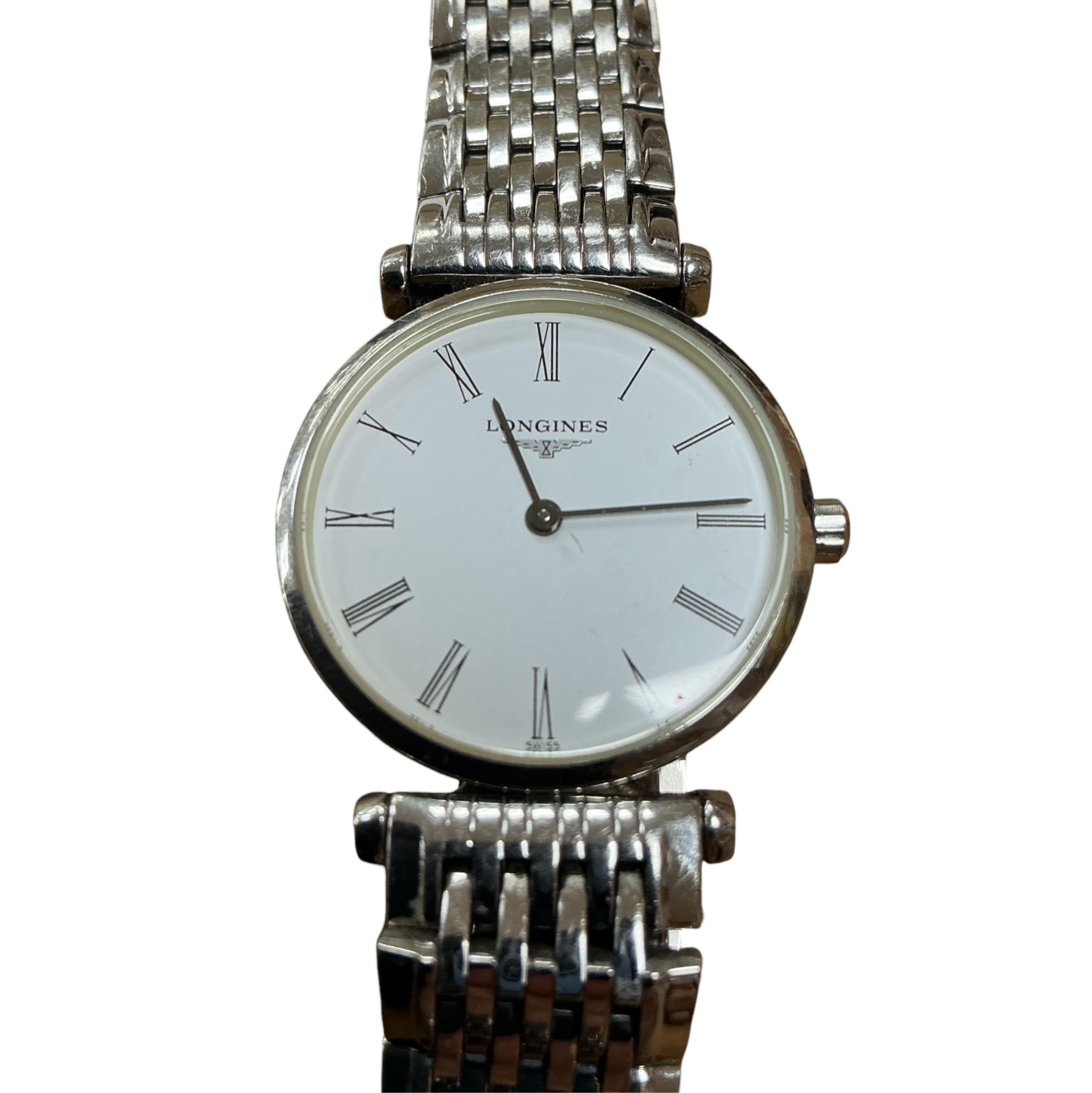 Lot 1917 , A lady’s 2010 stainless steel Longines La Grand Classique stainless steel quartz wristwatch, with Roman dial, case diameter 23mm, on a stainless steel Longines bracelet, with box, spare links and guarantee.