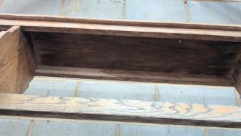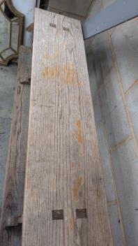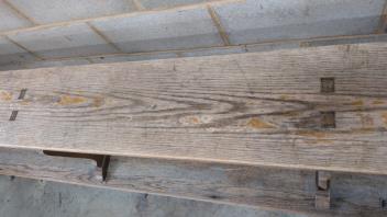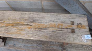 Lot 1052 , An oak school bench, from Kings College, Cambridge, width 300cm, depth 28cm, height 48cm