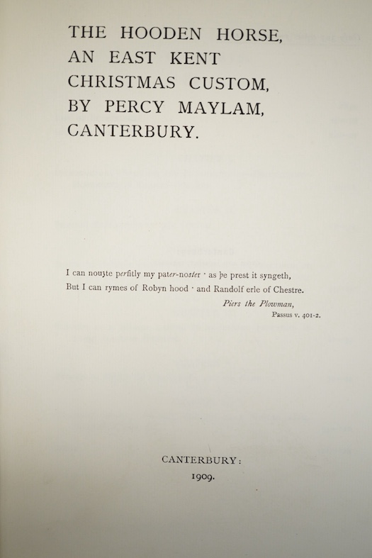 ° Maylam, Percy - The Hooden Horse, an East Kent Christmas Custom. Limited Edition (of 303 copies). 7 photo. plates, subscriber's list; original gilt lettered cloth. Canterbury: Cross and Jackman, Printers, 1909