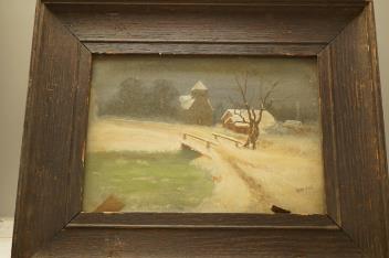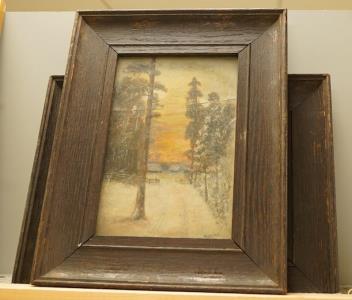 Lot 1699 , J. Dunlop, winter landscapes, each signed and dated ‘19, a set of three oils on card, oak framed, 21 x 14cm