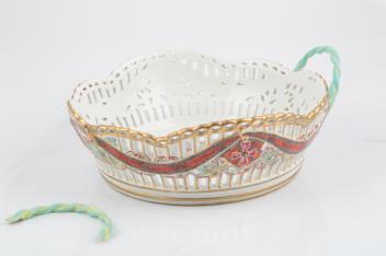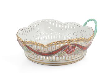 Lot 12 , A Russian porcelain circular basket from the Service of the Order of St Vladimir, Popov factory replacement