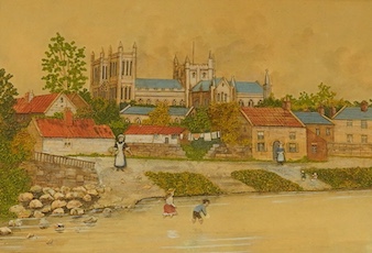 Early 20th century, ‘Ripon Cathedral’, three dimensional cork and mixed media, 21 x 31cm